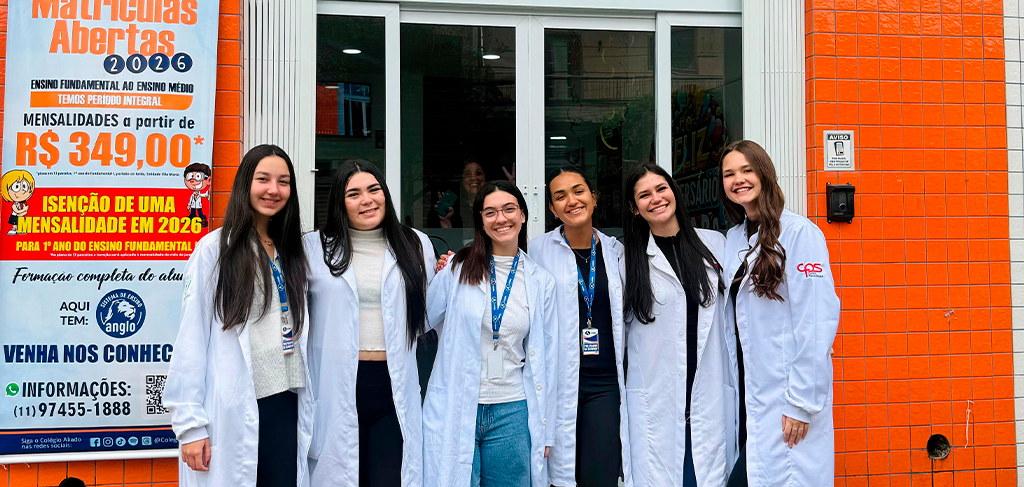 As alunas da ETEC Mandaqui realizaram uma visita aos estudantes do Colégio Aliado da unidade Vila Maria para observar o momento do lanche, conhecer suas escolhas alimentares e conversar sobre o que significa se alimentar bem.